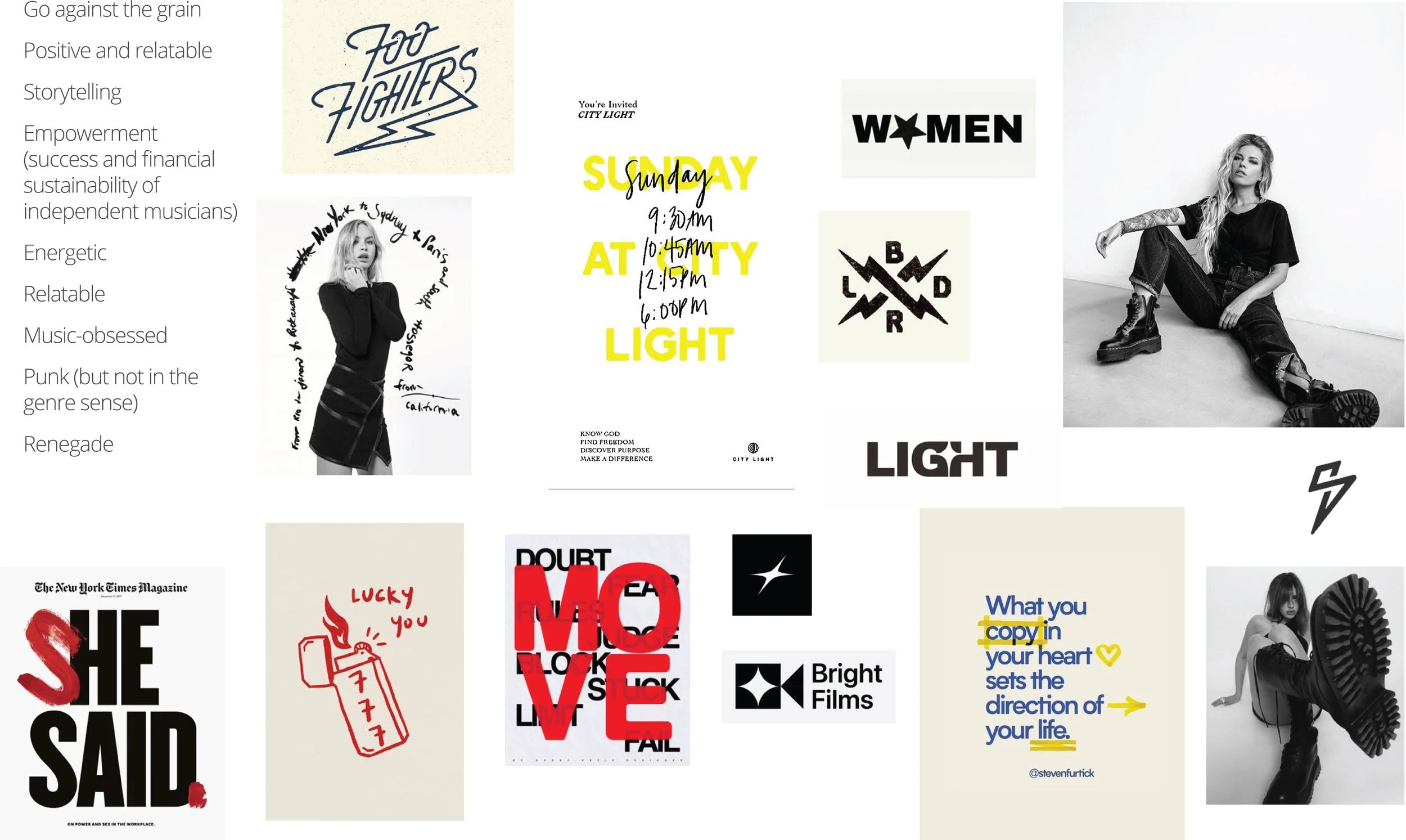 Together, we brainstormed ideas, tested language, and built mood boards and early visuals to help define tone, attitude, and direction. This groundwork clarified the heart of the brand: why it exists, who it’s for, how it shows up, and what it offers.